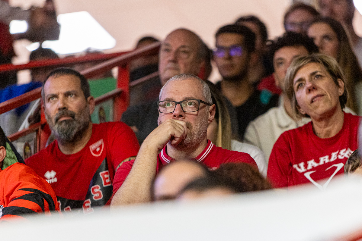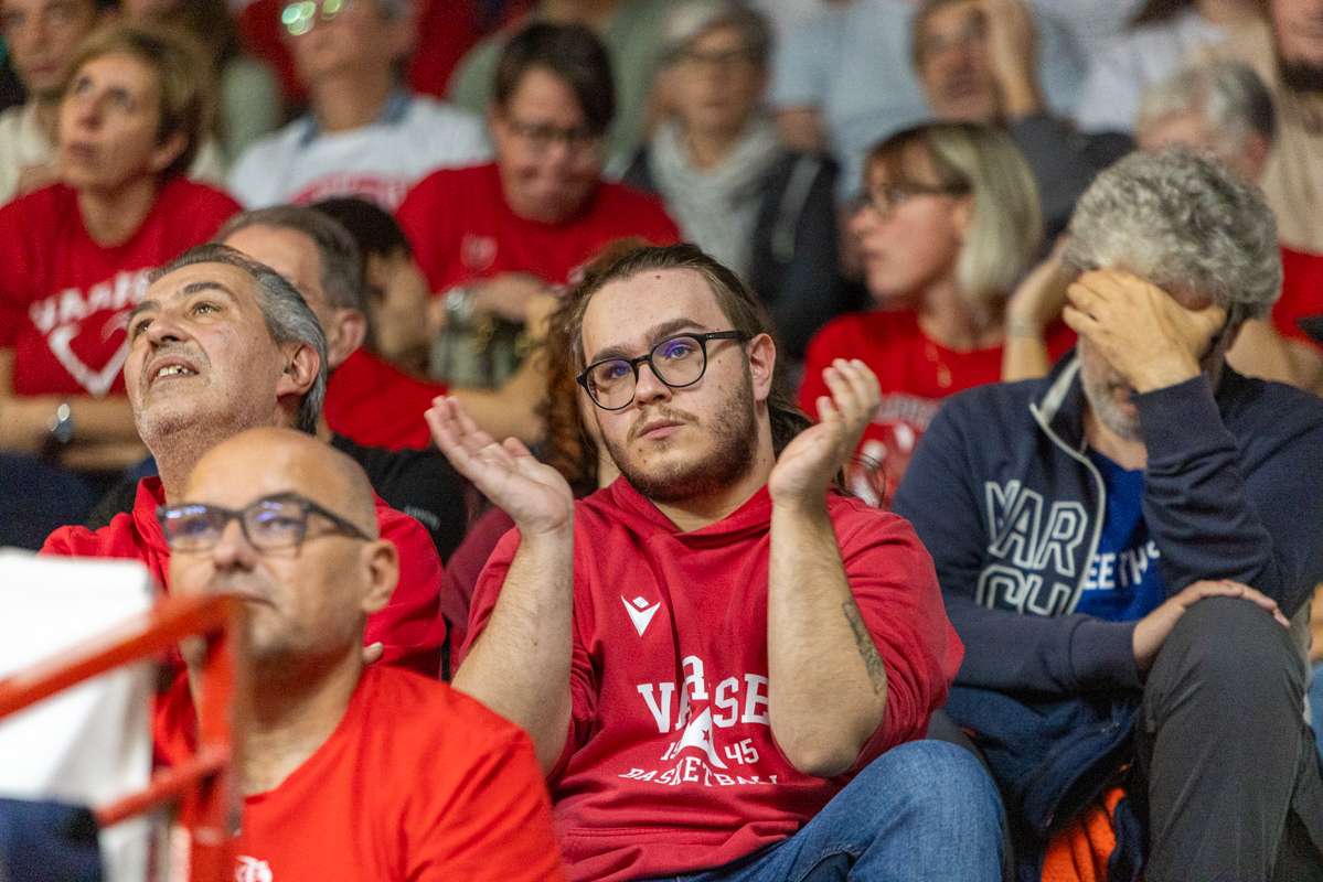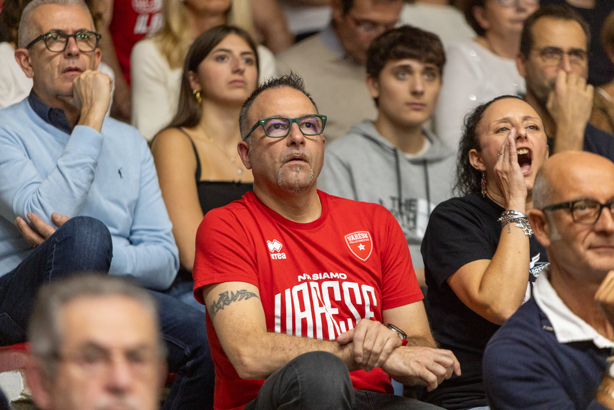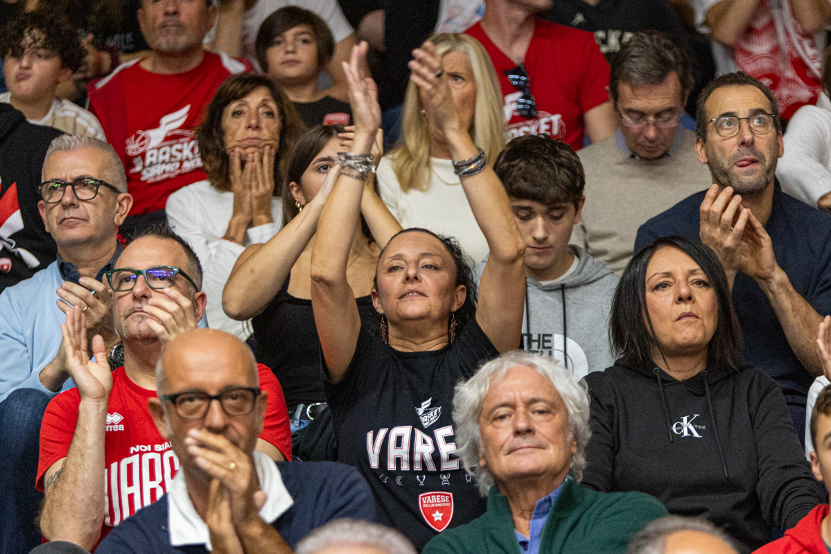 Gioie e dolori, felicità e tristezza, esaltazione e sconforto: c’è tutto nelle facce dei tifosi della Pallacanestro Varese, che cade 61-94 contro Milano, alla prima partita casalinga stagionale di questa stagione, gremendo l’Itelyum Arena con un sold-out da 4789 posti.