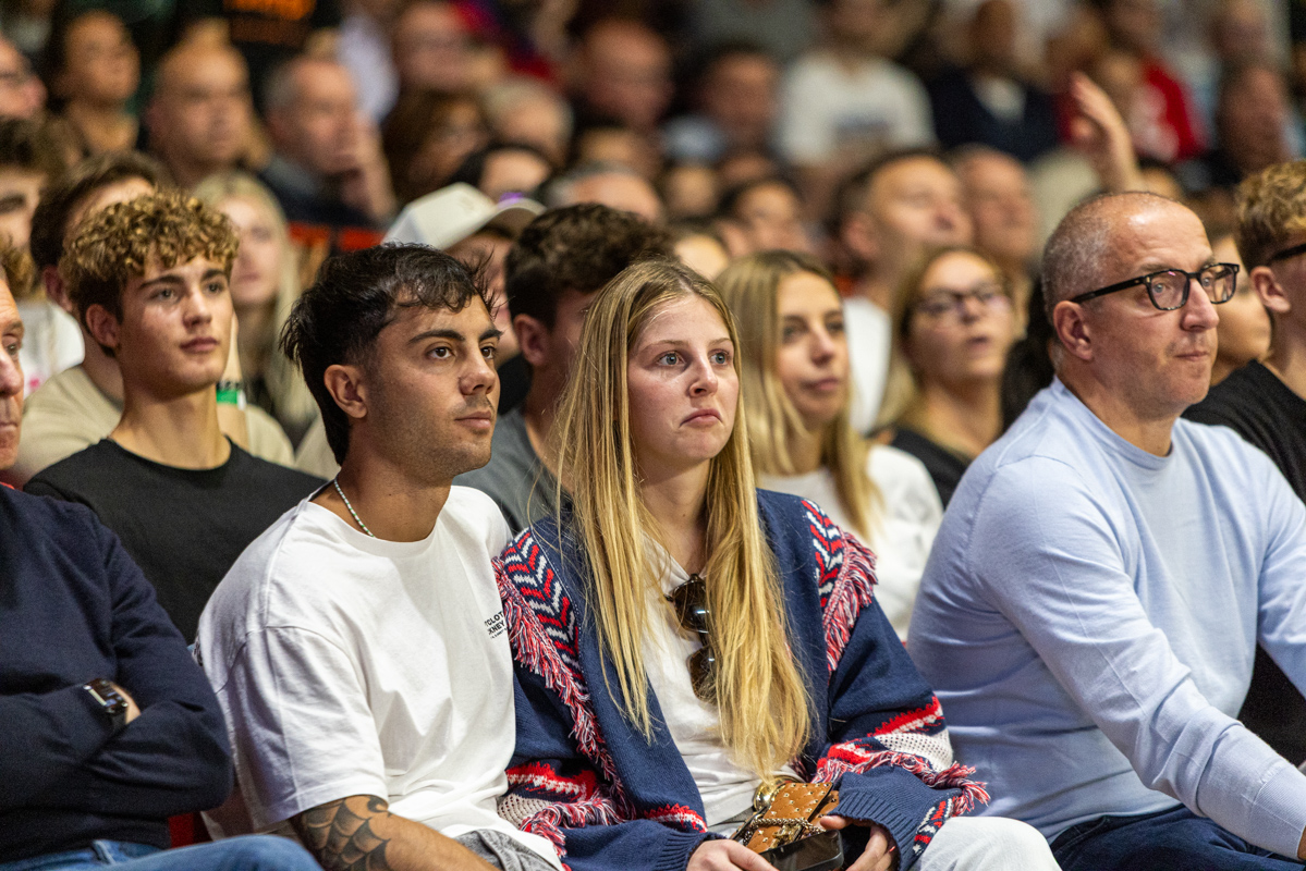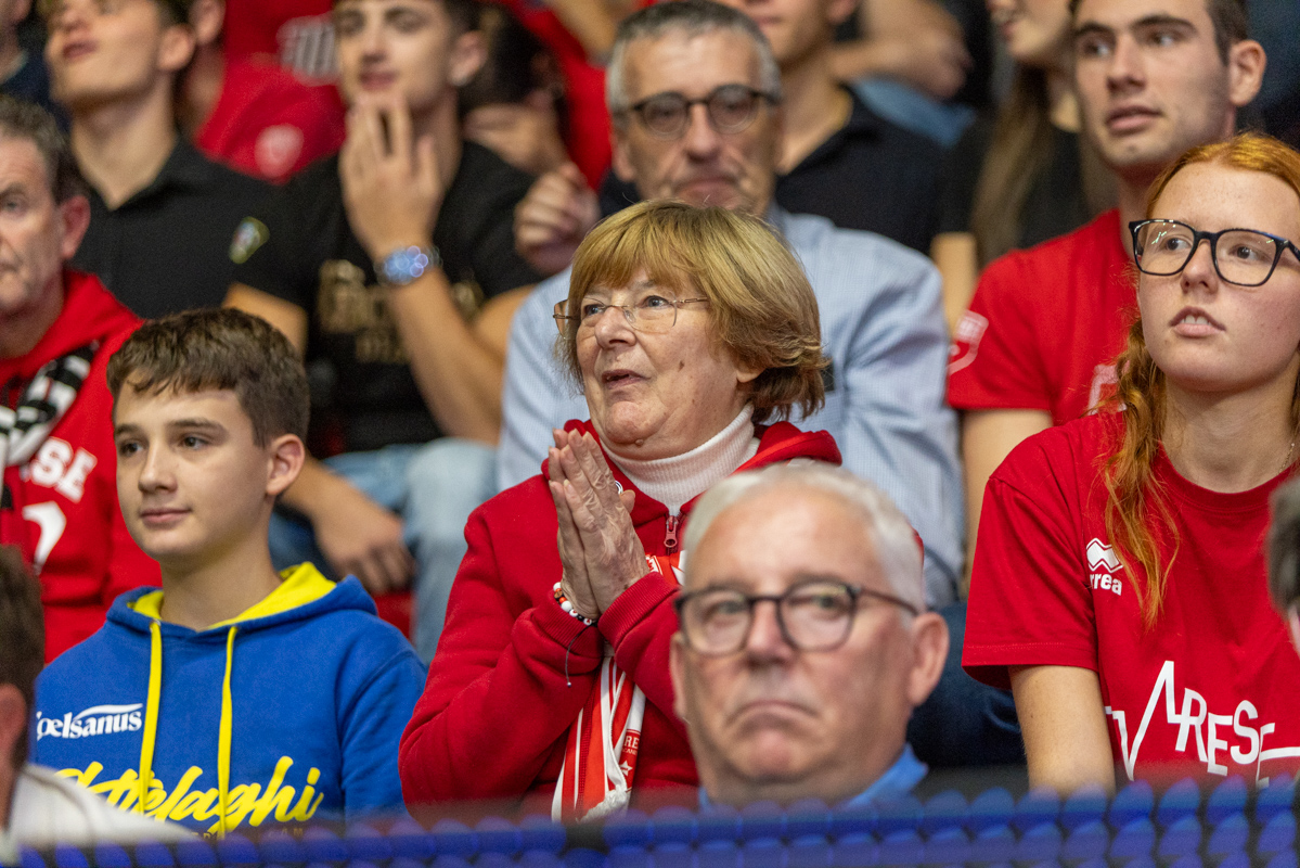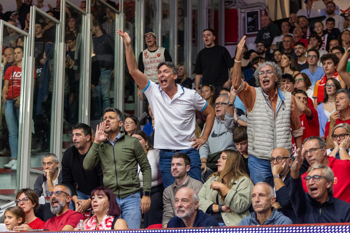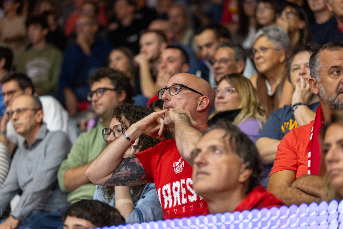 Gioie e dolori, felicità e tristezza, esaltazione e sconforto: c’è tutto nelle facce dei tifosi della Pallacanestro Varese, che cade 61-94 contro Milano, alla prima partita casalinga stagionale di questa stagione, gremendo l’Itelyum Arena con un sold-out da 4789 posti.