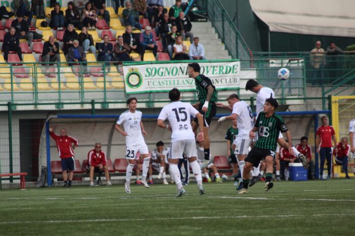 VILLA D’ALME’ (BG) Prima frazione di gioco caratterizzata da fraseggi a centrocampo, con la Castellanzese maggiormente in pressione sul portatore di palla e pronta a creare pericoli in avanti. La prima occasione pericolosa capita però sui piedi di Lussignoli, che recupera il lancio in verticale di Ventura e conclude a rete, con Frigerio attento a bloccare la conclusione. Risponde la Castellanzese con Chessa, autore di una punizione dal limite dell’area, in posizione centrale, conquistata da Colombo, che termina la sua corsa sul fondo del campo, a pochi centimetri dal palo. Una ghiotta occasione per i neroverdi capita sui piedi di Castelletto, ben servito da Chessa, che entra in area da sinistra e calcia a colpo sicuro, con il pallone che però esce dallo specchio della porta difesa da Passeri. Padroni di casa che sfiorano il vantaggio su punizione a tre dall’intervallo con Serena, il cui tiro trova l’opposizione della traversa, con la difesa neroverde che recupera e riparte. Botta e risposta nei minuiti finali del primo tempo, con Colombo che – lanciato a rete per vie centrali – trova l’opposizione miracolosa di Passeri a negargli il gol e successivamente con il Villa Valle a trovare la rete proprio allo scadere del tempo di recupero: sponda di Ravasi per Lancini che non lascia scampo a Frigerio.