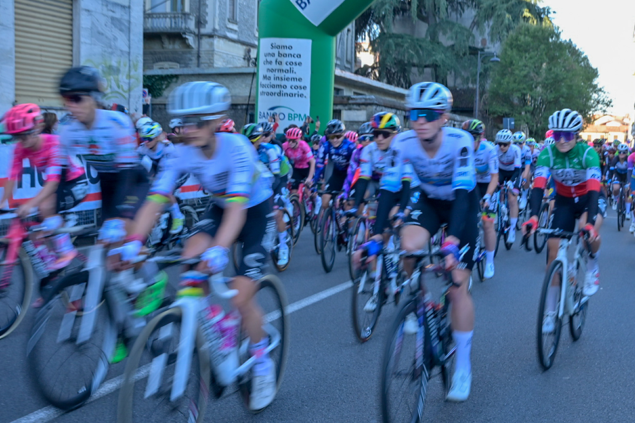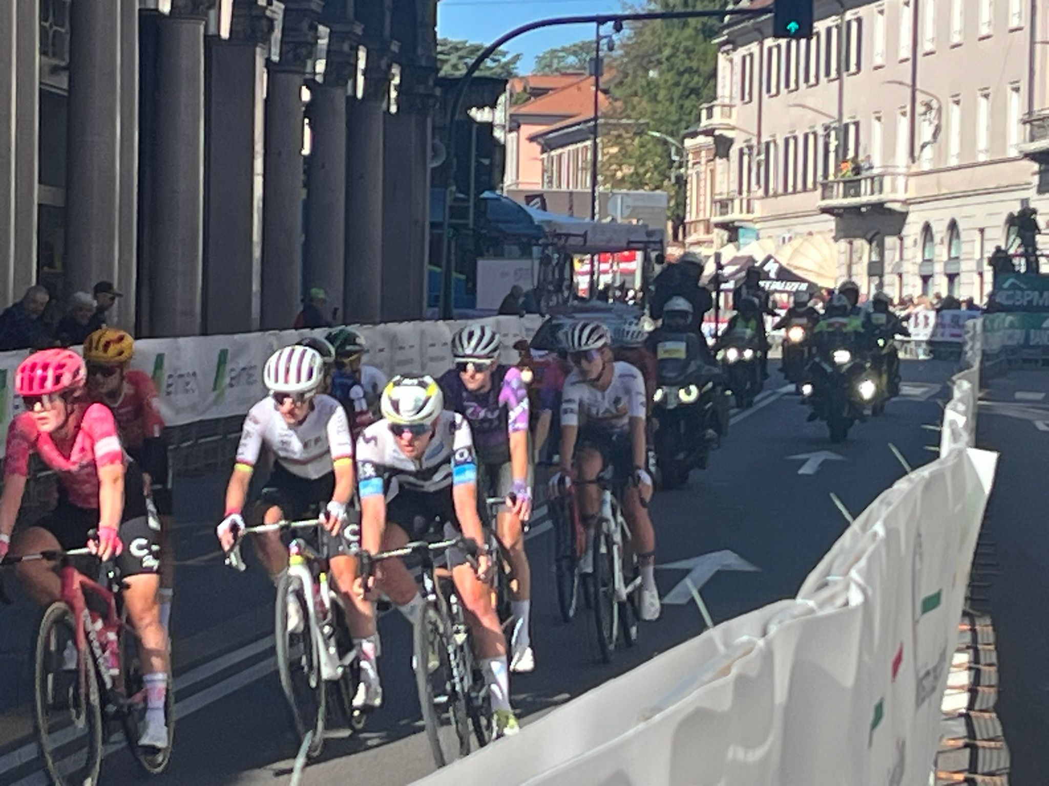La corsa delle donne è iniziata intorno alle 9.00 dal Museo del Tessile di Busto Arsizio (proprio da dove stanno partendo ora gli uomini): dopo un mini-circuito in città, via con il tratto in linea fino a Varese dove è iniziato il circuito di 15.9km da ripetere sei volte. Una fuga ha animato le prime battute, ma l’attacco di cinque atlete è stato assorbito dal gruppo; nel circuito varesotto una decina di cicliste (Noemi Ruegg, Niamh Fischer-Black, Kim Pienaar, Cecilie Ludwig Uttrup, Ashleigh Moolman, Elise Chabbey, Monica Trinca Colonel, Cat Ferguson, Eleonora Gasparrini e Katrine Aalerud) sono riuscite a mettere le ruote davanti a tutte ma, all’inizio del terzultimo giro, Elisa Longo Borghini ha allungato sul Montello con la campionessa europea Demi Vollering sulla sua ruota ricucendo in fretta il gap con le attaccanti.